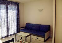 ![]() Vardagsrummet: ett soffbord, en TV-möbel och en bäddbar soffa. Badrummet: 1 handfat och 1 duschkabin. |